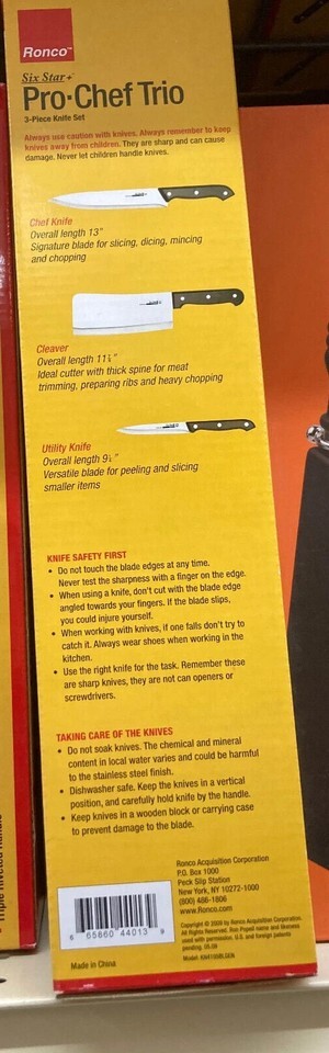 Ronco Six Star Pro-Chef Trio - 3 Piece Knife Set - Chef Knife Cleaver Utility