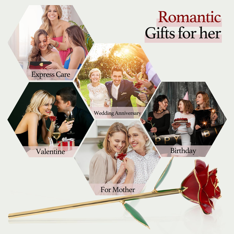 For your wife, girlfriend, mom, great grandma,or female friend, sisters and all your beloved ladies.As rose represents the Romantic of love and gold represents the unique of love, the combination of the two means the eternity and Romantic of love.more durable and professional look.
