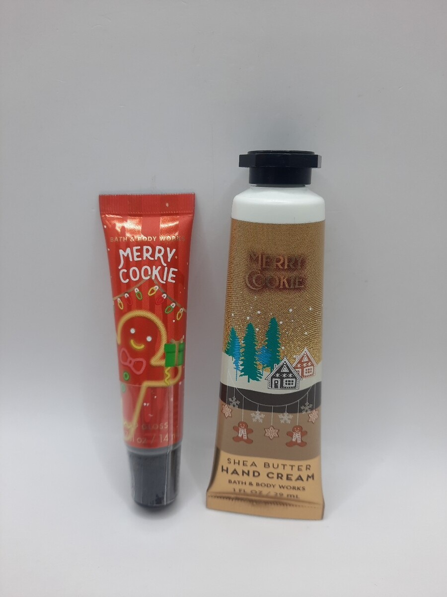 Bath & Body Works 2 Pc MERRY COOKIE Hand Cream & Lip Gloss Brand New