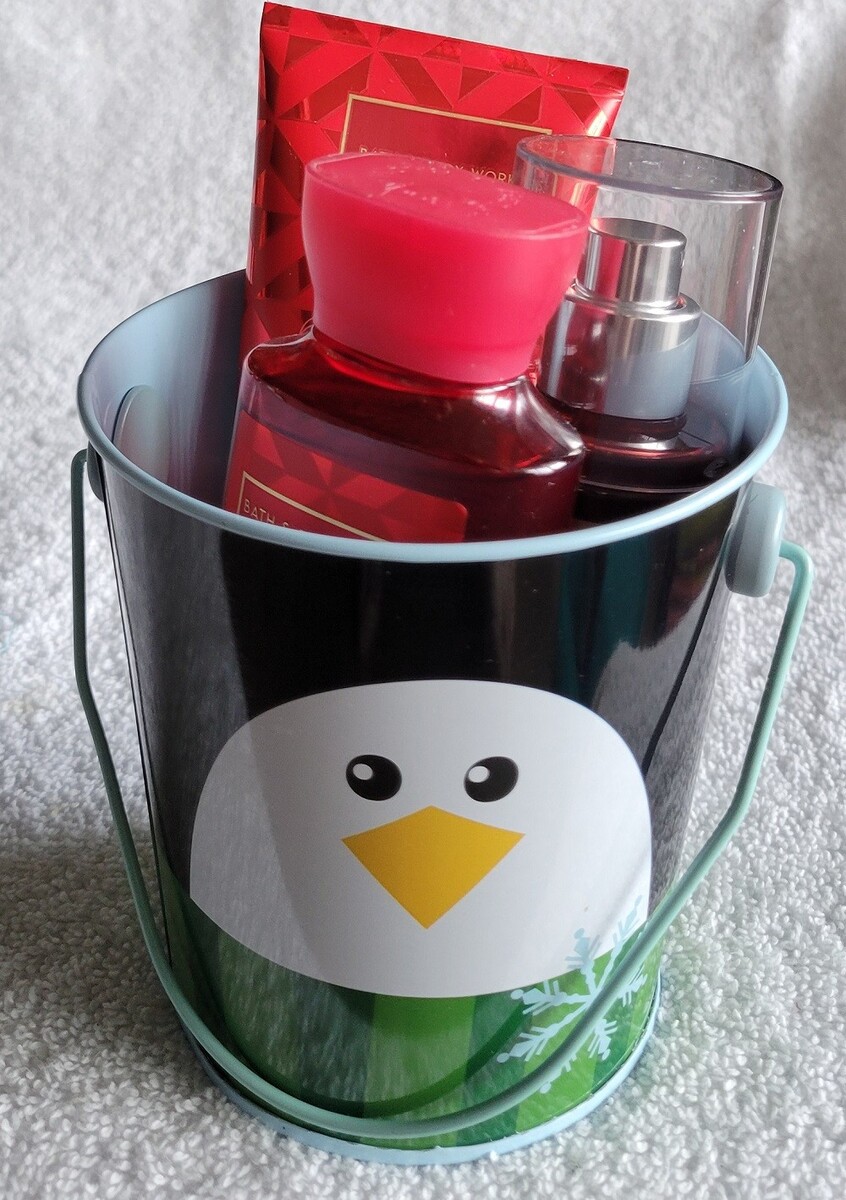 Christmas Penguin Small Pail with BBW Travel Winter Candy Apple Set