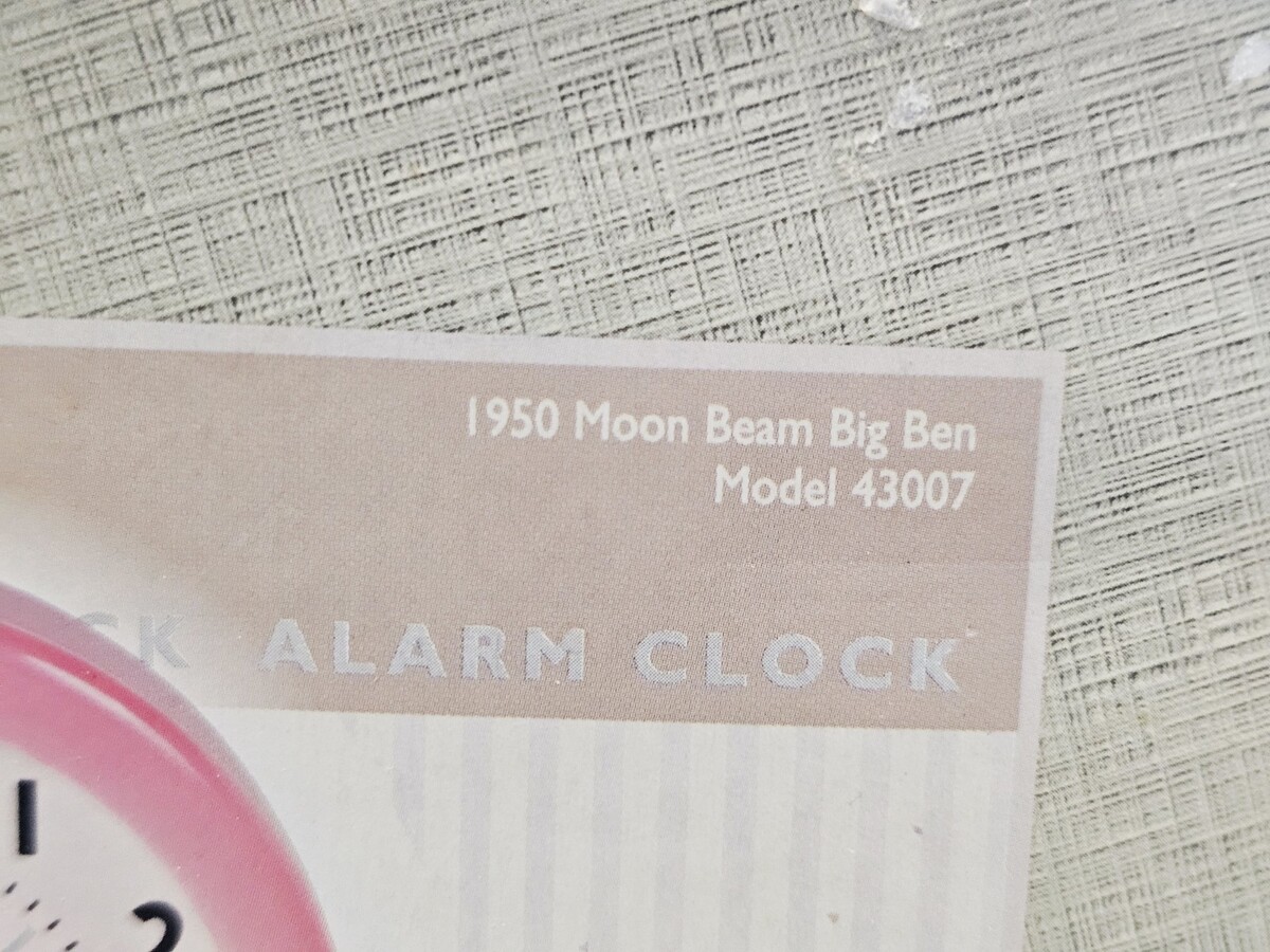 Vintage BIG BEN Moon Beam Pink Alarm Clock Light Up Working Unused w/Box 43007