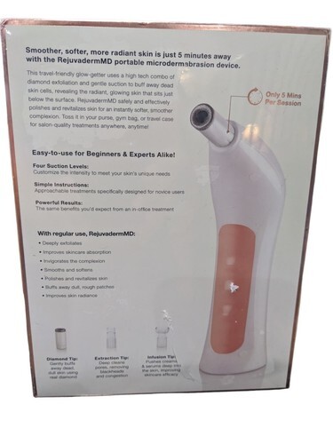 Smoother, softer, more radiant skin is just 5 minutes away with the RejuvadermMD portable microdermabrasion device. This lightweight and portable glow-getter uses a high-tech combo of diamond exfoliation and gentle suction to buff away dead skin cells, revealing the radiant, glowing skin that sits just below the surface.