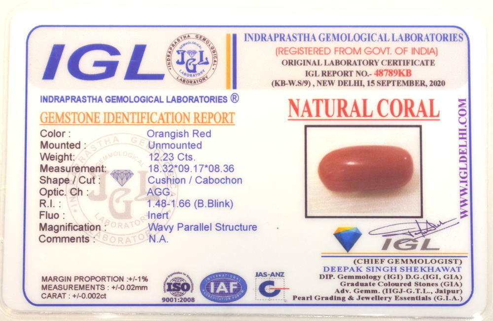 Coral / Red coral - 12.23 carats - Italian - Lab Certified