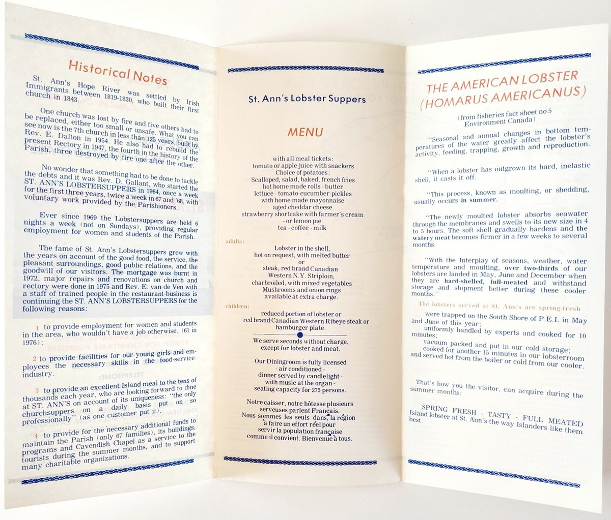 1970s Cavendish Prince Edward Island St Ann Church Supper Menu Brochure PEI E8S