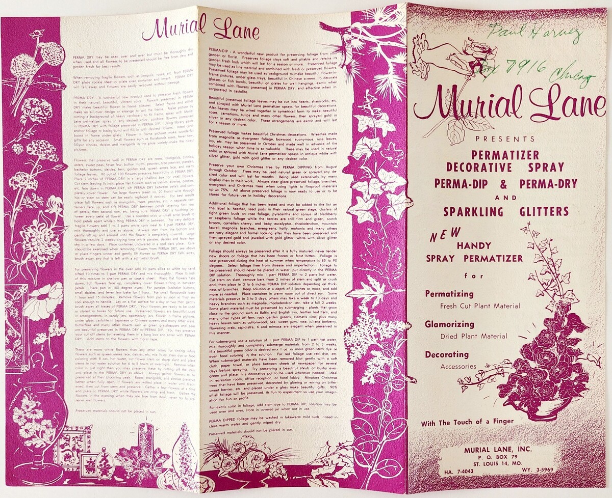 1970s Murial Lane Advertisement Decorative Spray For Plants Crafts Brochure E8S