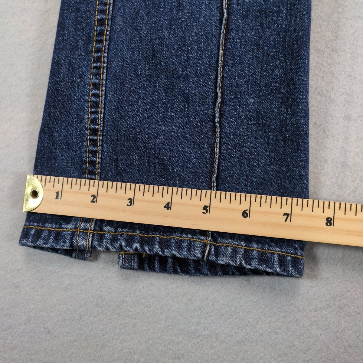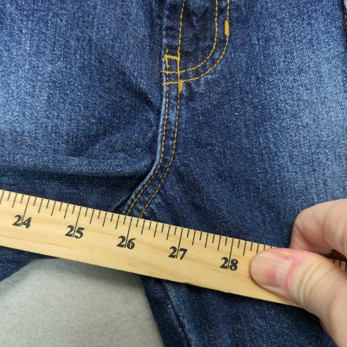 Features: Regular Fit, Low Rise, Dark Wash, Slash Pocket, Cropped, Easy Care, Pockets, Crop, Solid Pattern, 29 in Measured Waist, 26 in Inseam, Button Zip Closure, Center Leg Seam, Contrast Stitching, Logo, Machine Washable