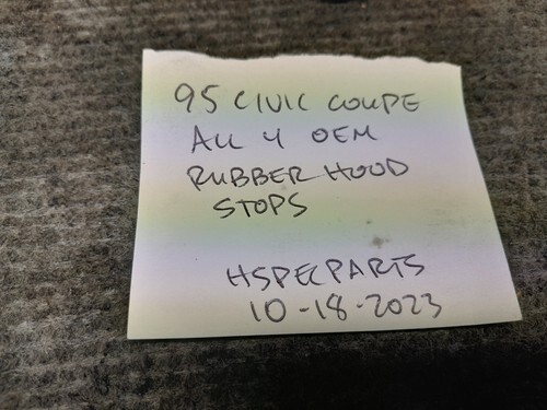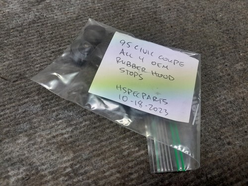 GOOD USED CONDITION. 4 PCS - OEM RUBBER HOOD STOPS FROM A 1995 CIVIC COUPE. FITS 92-95 CIVIC AND 94-01 INTEGRA. SHIPS USPS WITHIN 1 BUSINESS DAY OF PAYMENT.