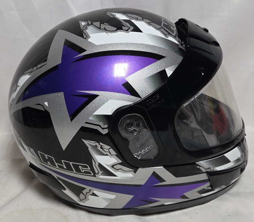 Large HJC Snowmobile Helmet CL-12 Purple, White, Silver, Black