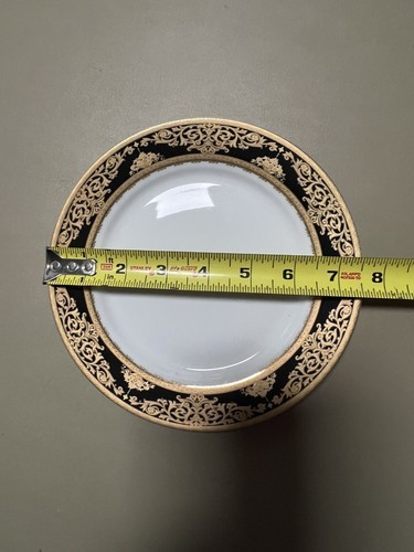 This Pegasus fine porcelain plate is a stunning addition to any collection. The black and gold trim adds a touch of elegance to the approximately 7-1/2" plate. Crafted with quality materials, this plate is sure to impress. The brand, Pegasus, is known for its exceptional porcelain and this plate is no exception. Perfect for display or for use during special occasions, this plate is a must-have for any collector.