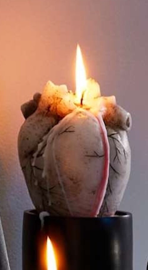 Flickering candles in the night become even spookier when they actually have unexpected features - and it doesn't get any creepier than this! Our 5in. White Heart Bleeding Candle makes a very surprising scare, with all the details to shock and awe. This detailed figural heart-shaped candle will enhance any holder where it's placed and are sure to bring on the oohs and ahhs all season long.