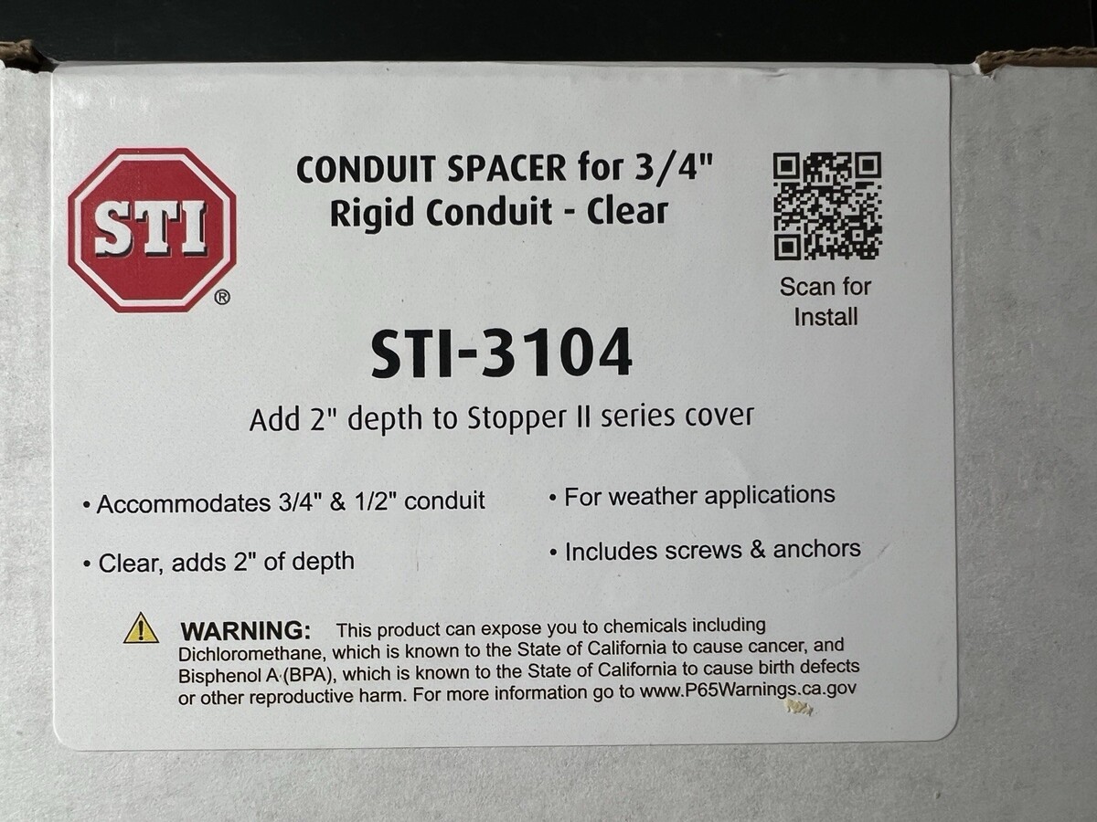 STI 3104 Stopper II Large Conduit Spacer for 3/4" Rigid Conduit - Clear - NEW