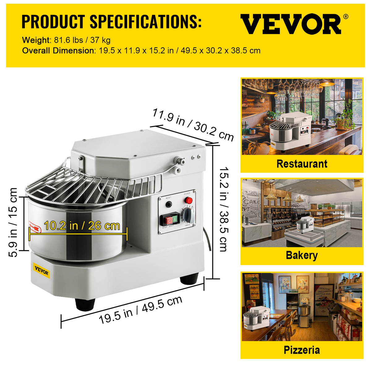 VEVOR Commercial Food Mixer, 7.3Qt, 450W Dual Rotating Dough Kneading Machine