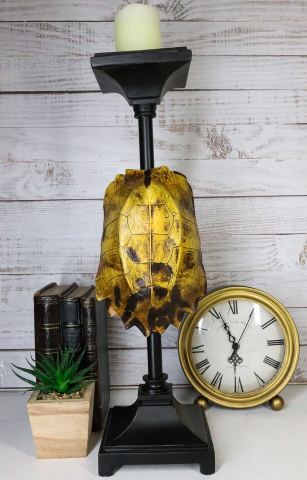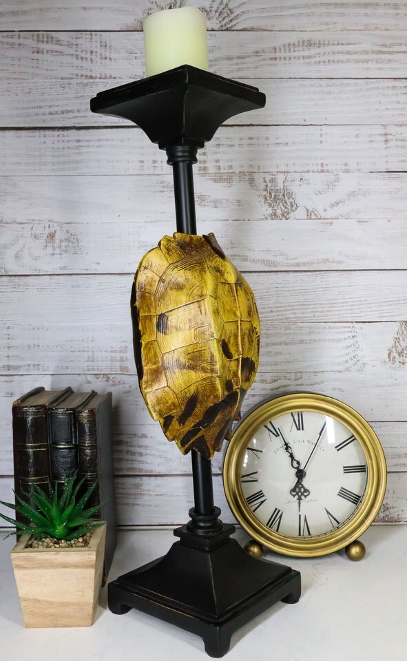 Large Nautical Reptile Exotic Turtle Shell Pillar Candle Holder Statue 17"High