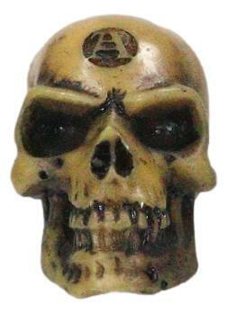 ? Everyone has stress that they need to relieve. For a gothic twist on the typical token, consider this Lapillus Worry Skull! Designed for use as a worry token, this trinket is made to accompany you and improve your spirits! This small token is crafted entirely in fine resin and takes the shape of a traditional human skull, down to the suture lines and hollow eyes! Emblazoned on the forehead of the skull is the iconic black A, symbolic of the Alchemist.