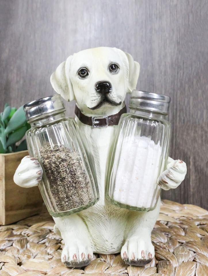 ? A notoriously popular hunting dog, a cute Labrador Retriever puppy is featured in this salt and pepper shaker set that is certain to captivate your guests with its realistic look and adorable big round eyes! Makes a great table centerpiece for your country kitchen decor or as a welcome Christmas gift for dog lovers.