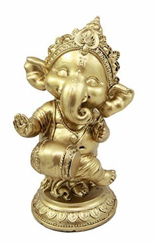 Ebros Hindu Elephant God Ritual Dancing Ganesha With Mridangam Drum Golden Statue 6"H