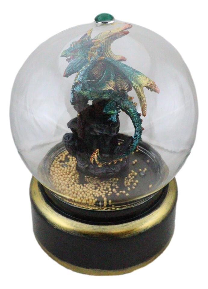 ? This Metallic Iridescent Dragon Musical Glitter Air Globe is made of designer composite resin and glass, hand painted and polished. Color Tone may vary