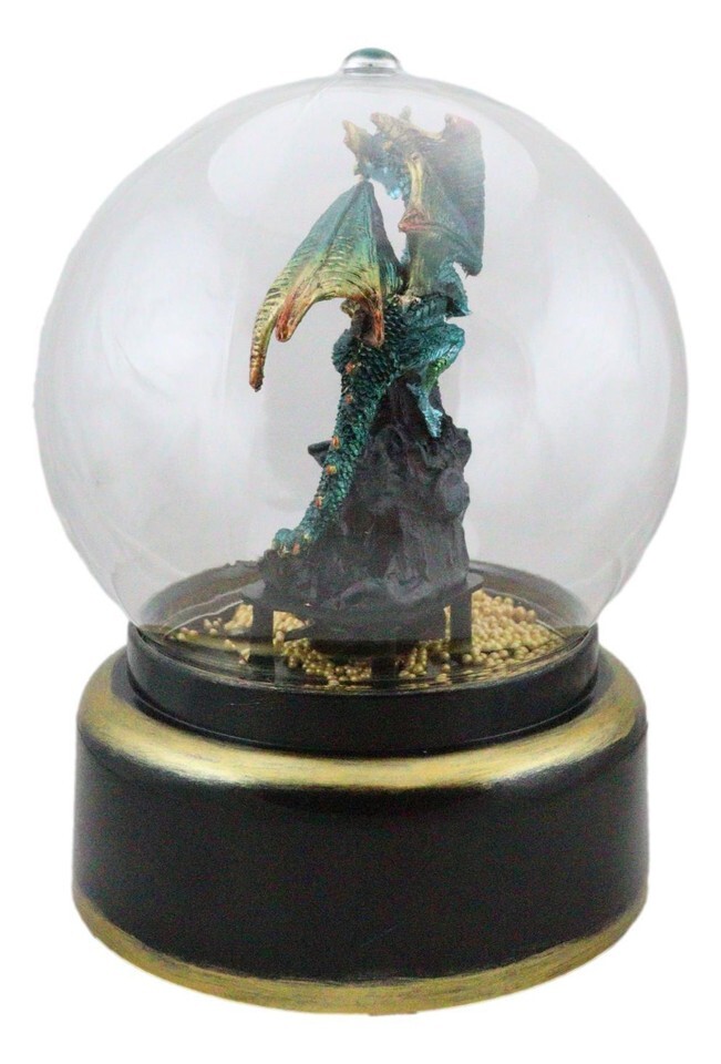 ? Dragon lovers and fans of medieval fantasy are sure to admire this fantastical air powered musical glitter globe. This unique artwork features a dragon on a landmark encased within an air globe. The globe is full of golden sparkles, which swirl up and around this curious beast when the air powered motor is activated. Attractive LED light turns on when the air power is switched on, giving the air globe a dramatic finish on your desks or shelves.