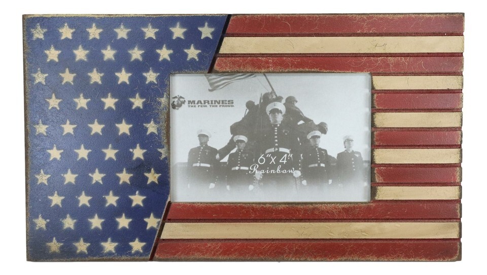 ? Frame your favorite photo in an American Flag US air force Frame. This perfectly patriotic picture frame features a resin construction with a flag design in dark blue, white, red, and cream. Whether you wish to hold a photograph of your favorite Independence Day memory or a portrait of your military hero, this frame will celebrate your pictures in style!