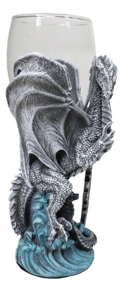 ? This Ruth Thompson Dragon Blade Series Glass Wine Goblet is made of designer composite resin and glass, hand painted and polished individually. Color Tone may vary slightly from photos.