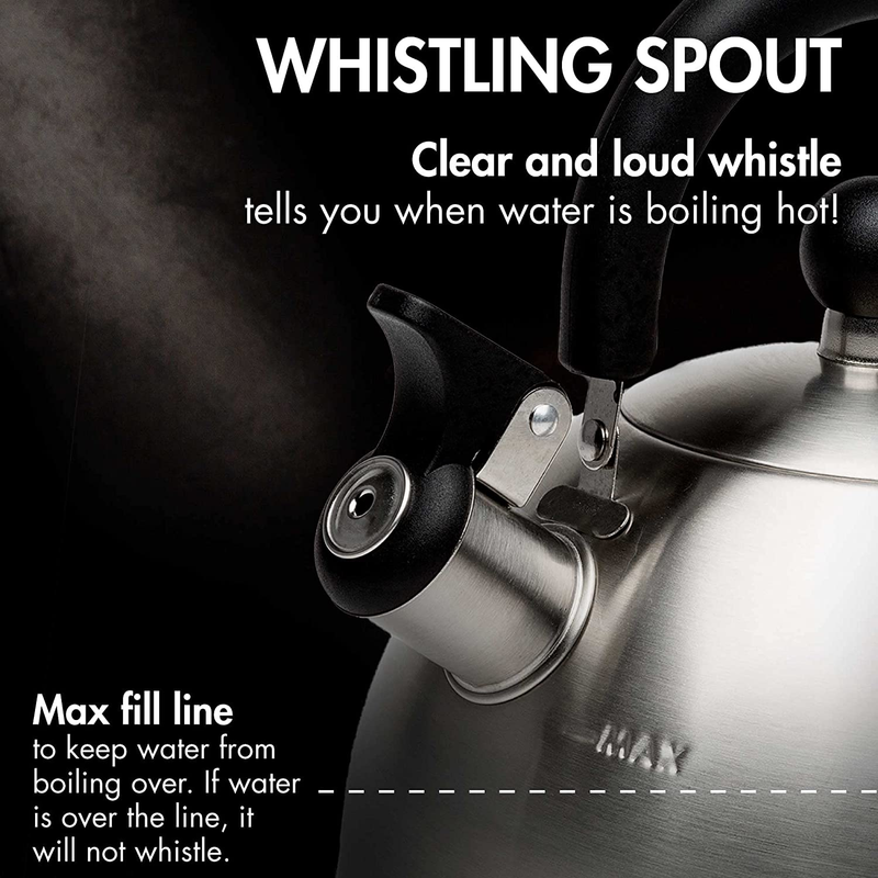 Stewart Whistling Stovetop Tea Kettle Food Grade Stainless Steel, Hot Water Fast