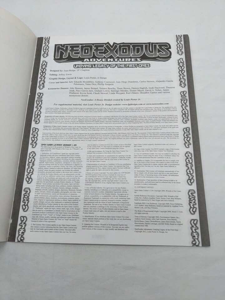 Neoexodus Adventures Undying Legacy Of The First Ones RPG Book