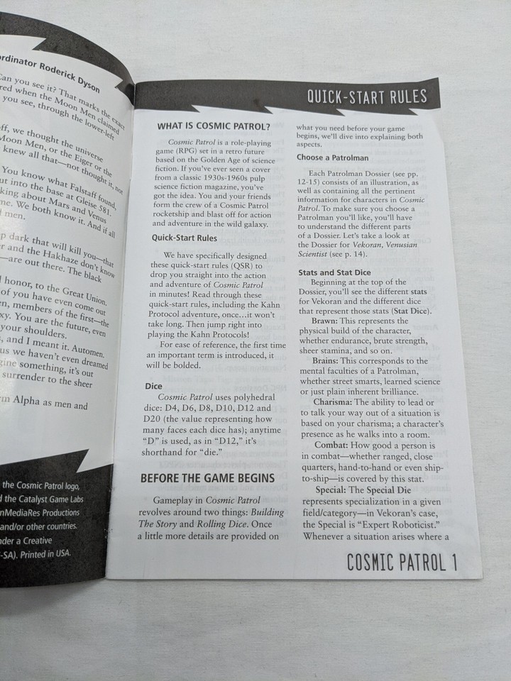 Cosmic Patrol Quick-Start Rules The Kahn Protocol Science Fiction RPG Booklet.