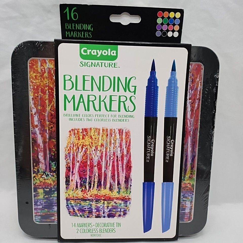Crayola Signature Blending Markers (14) Markers Decorative Tin (2) Blenders