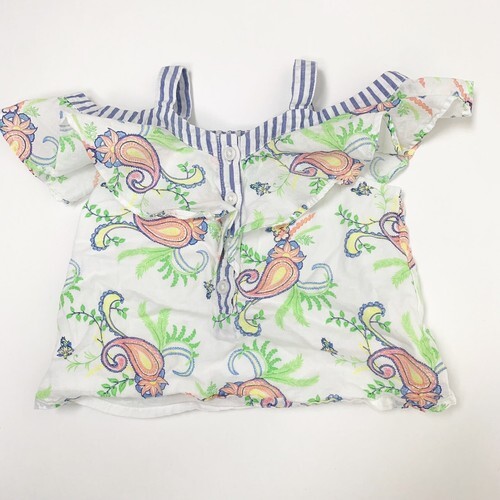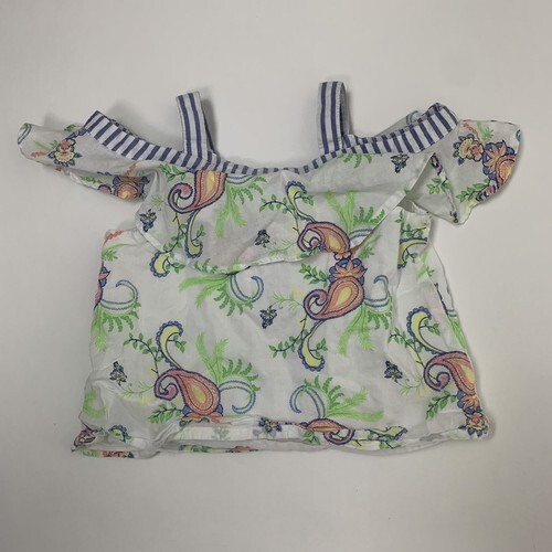 Janie and Jack Girls White Blue Paisley Ruffle Sleeve Top Shirt Sz 6-12 Month