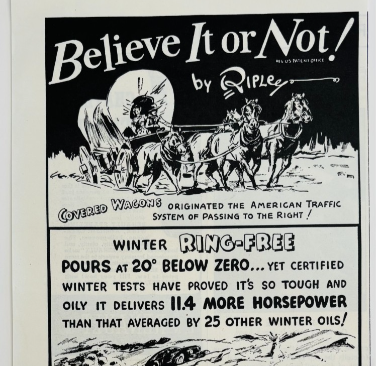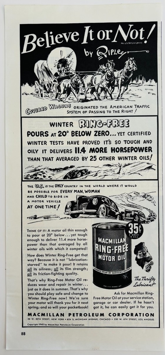 1940 MacMillan Motor Oil Ring Free Advertisement Automobilia Ripley's DWJ5C