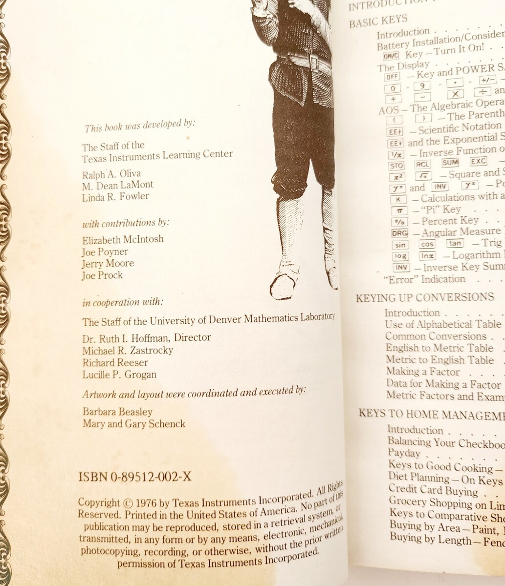1976 Great International Book On Keys Texas Instruments Calculator 1st Ed PB F7