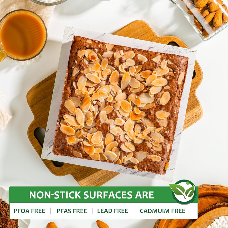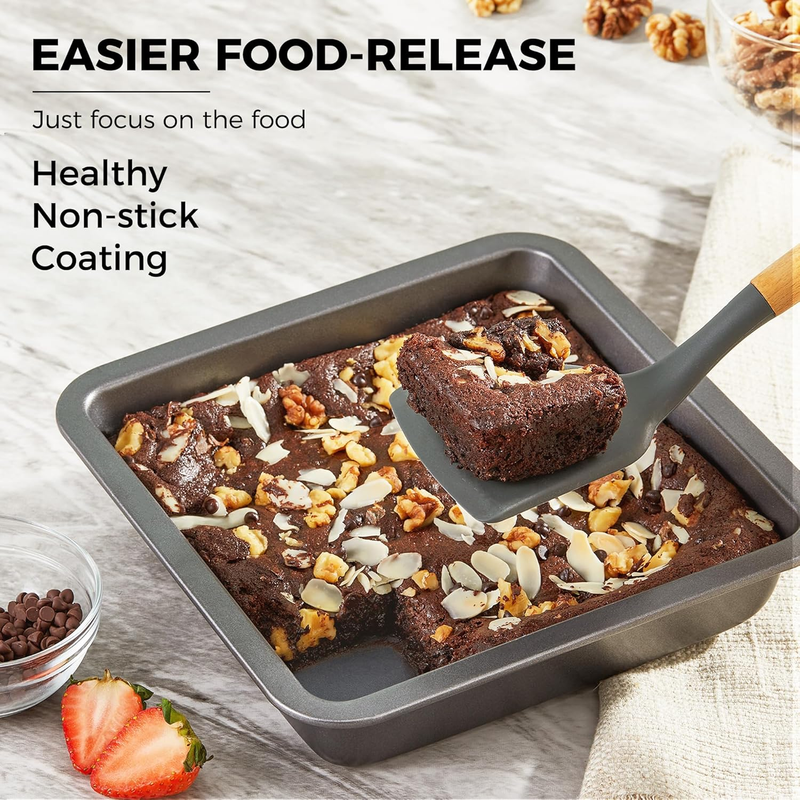 8X8 Cake Baking Pan Set, Nonstick Square Brownie Pans with Wider Grips