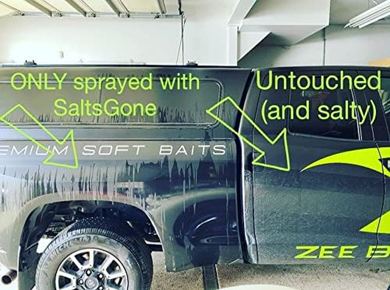 Salts Gone is a safe and effective method to protect your vehicle before, during, and after exposure to salt and brine. Salts Gone is proven to dissolve salt and prevent new salt from adhering to the surface.