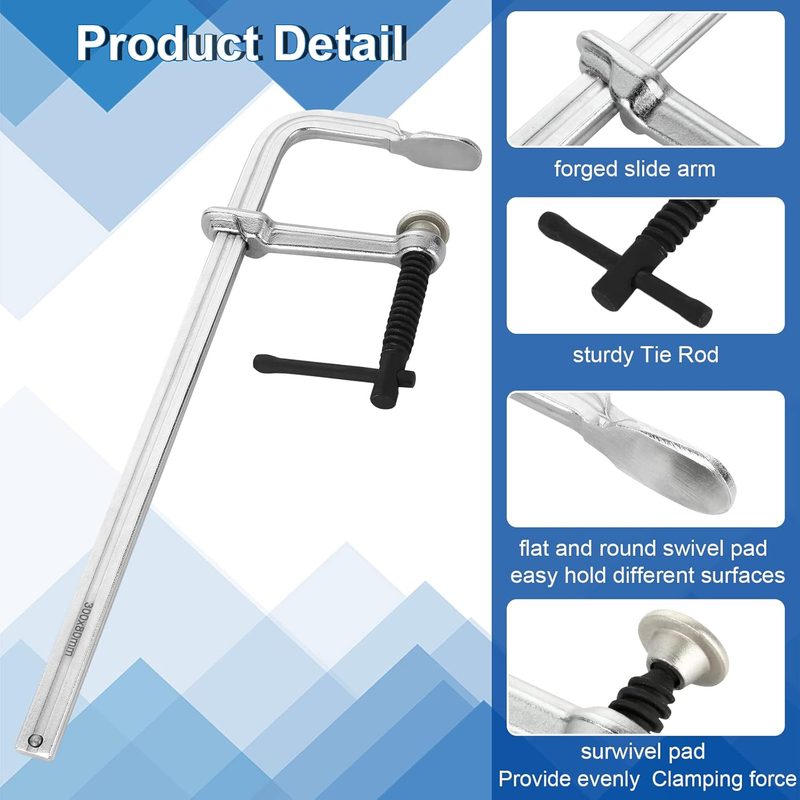 Premium Quality: Made of solid 45# carbon steel, and an anti-rust plating surface, these 12-inch F clamps are sturdy, and durable to use. Our welding clamps heavy duty flats? round swivel pad will easy hold flat surfaces, different angled edges and small bars