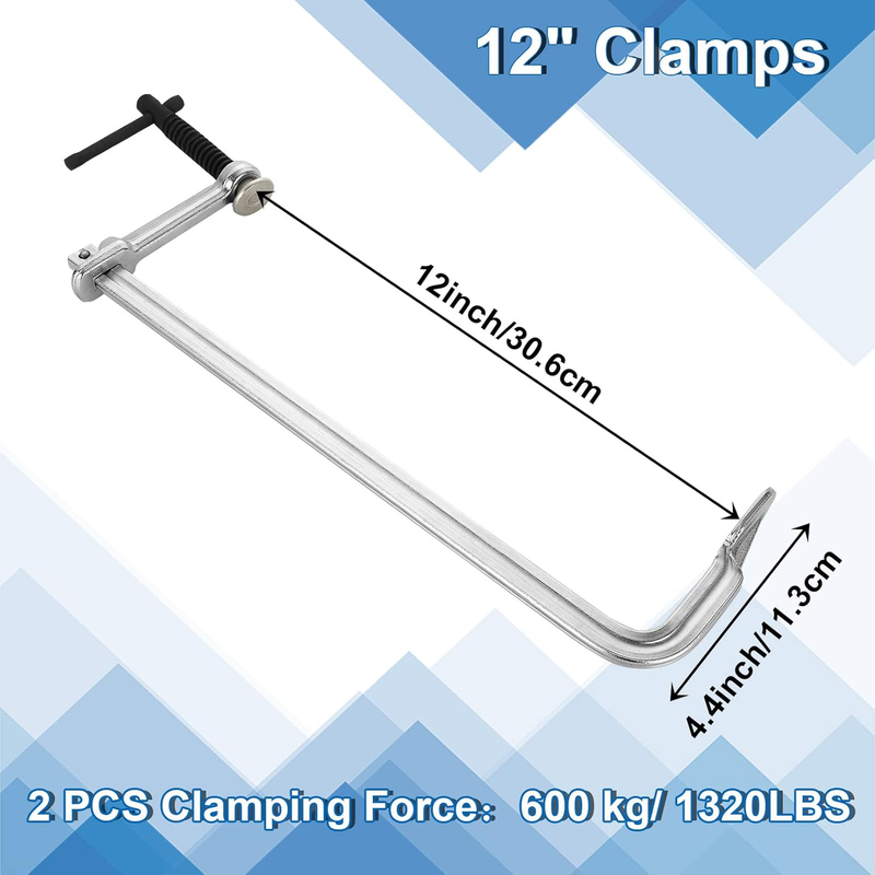 Heavy duty F Clamps: These f clamps for welding own the adjustable jaw opening up to 12 inch /300 mm, 3.15inch / 80mm throat depth, and 1/3inch thickness spindle for durability and comfort use