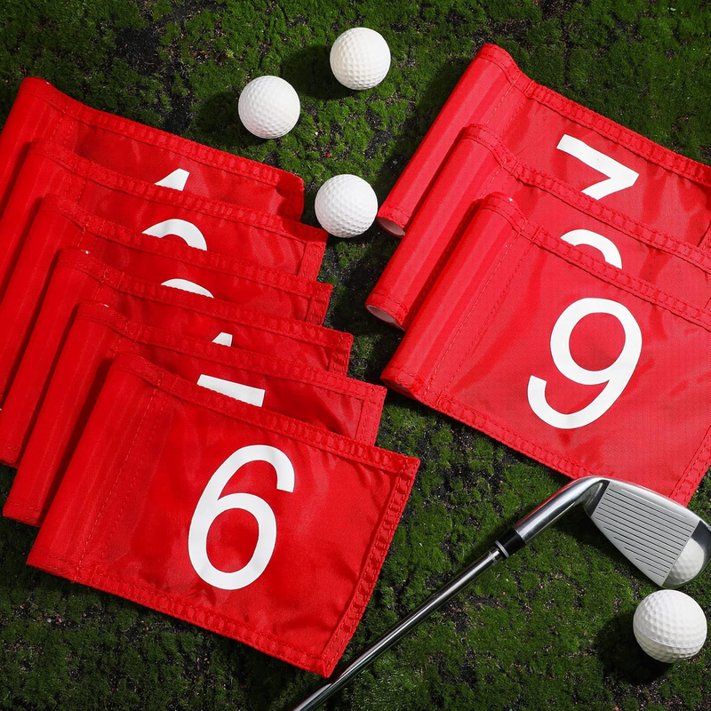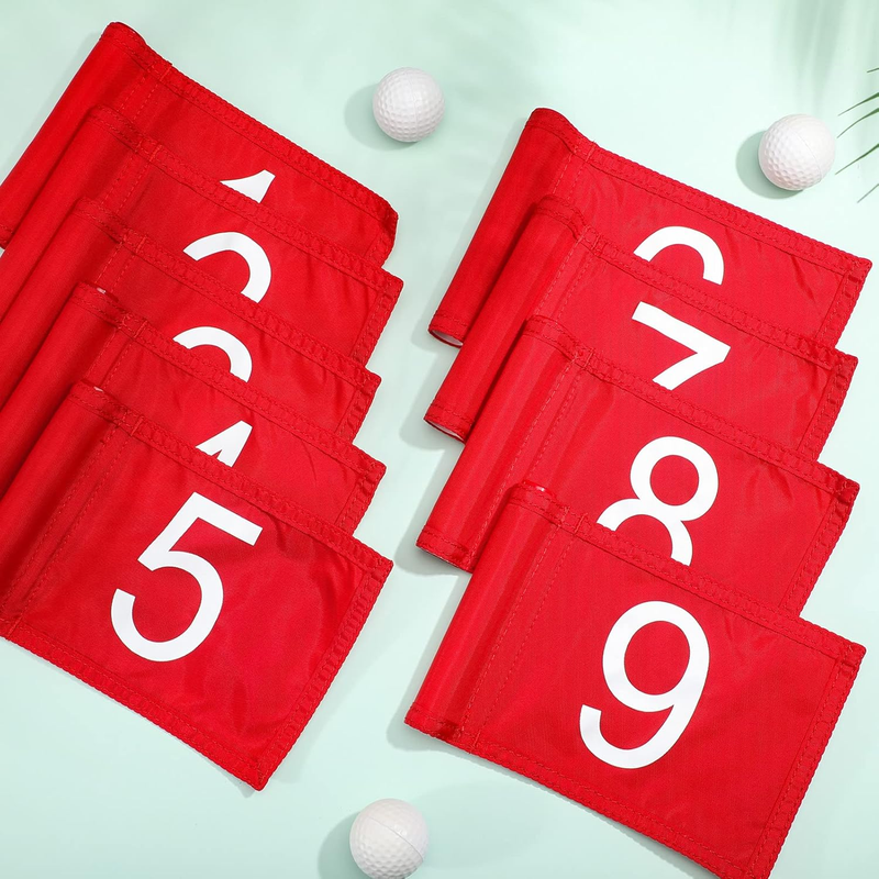 Numbered Golf Flags: you will receive 9 pieces of golfing putting green flags in red and white color, which are equipped with tubes inserted; The size of the flag is about 8.9 x 5.7 inches/ 22.5 x 14.5 cm, suitable for most types of golfing sports