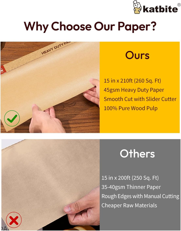 Advanced Series: Crafted with high-quality materials, Katbite's Advanced Series parchment paper offer standard heat resistance, oil resistance, and stability.