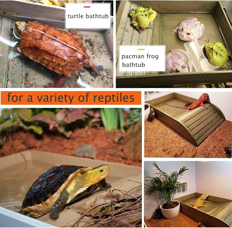 MULTIPURPOSE WIDELY USED: The reptile bathing pool with large capacity can be used as a bath tub for pets, as a food bowl or water bowl for eating or drinking, and as a resting platform for basking. Great for reptiles, box turtle, land turtle, russian tortoise, desert tortoise, horn frogs, lizards, tiger salamander, etc