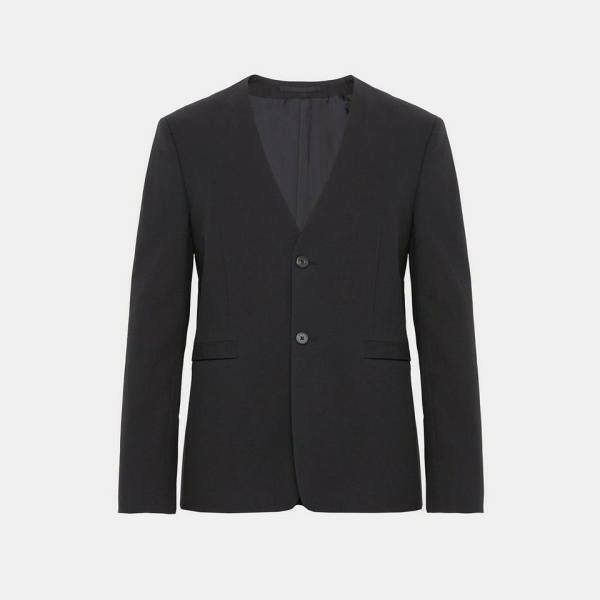 This is a great Theory blazer. Soft-structured jacket features a collarless lapel and lightly padded shoulders to create a slightly structured shoulder, while the partial back lining and fully lined sleeves ensure a comfortable fit. Additional details include three interior pockets, four-button cuffs and a back vent. Cut from a sportswear-inspired stretch cotton-ripstop from one of Italy?s finest mills. New with $595 retail tags