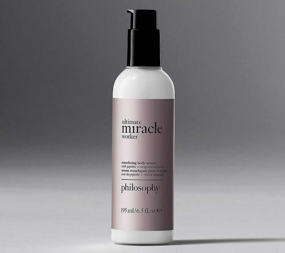 Brand new Philosophy Ultimate Miracle Worker Resurfacing Body Serum with peptides and encapsulated retinol for crepey skin. $54 retail