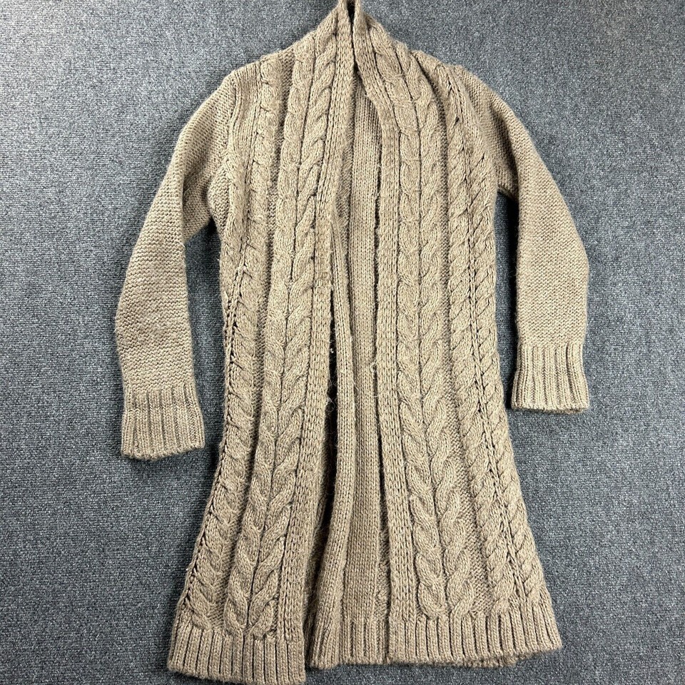 Vince Camuto Cardigan Womens Small Beige Knit Open Front Alpaca Wool Acrylic