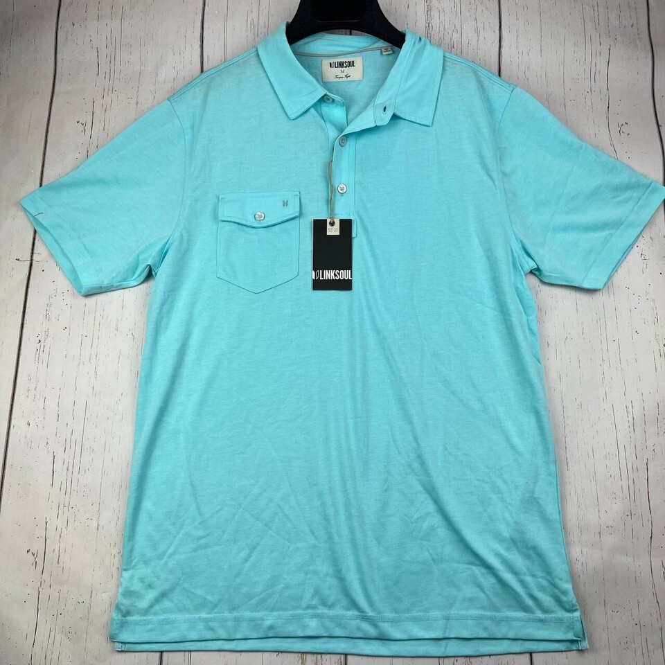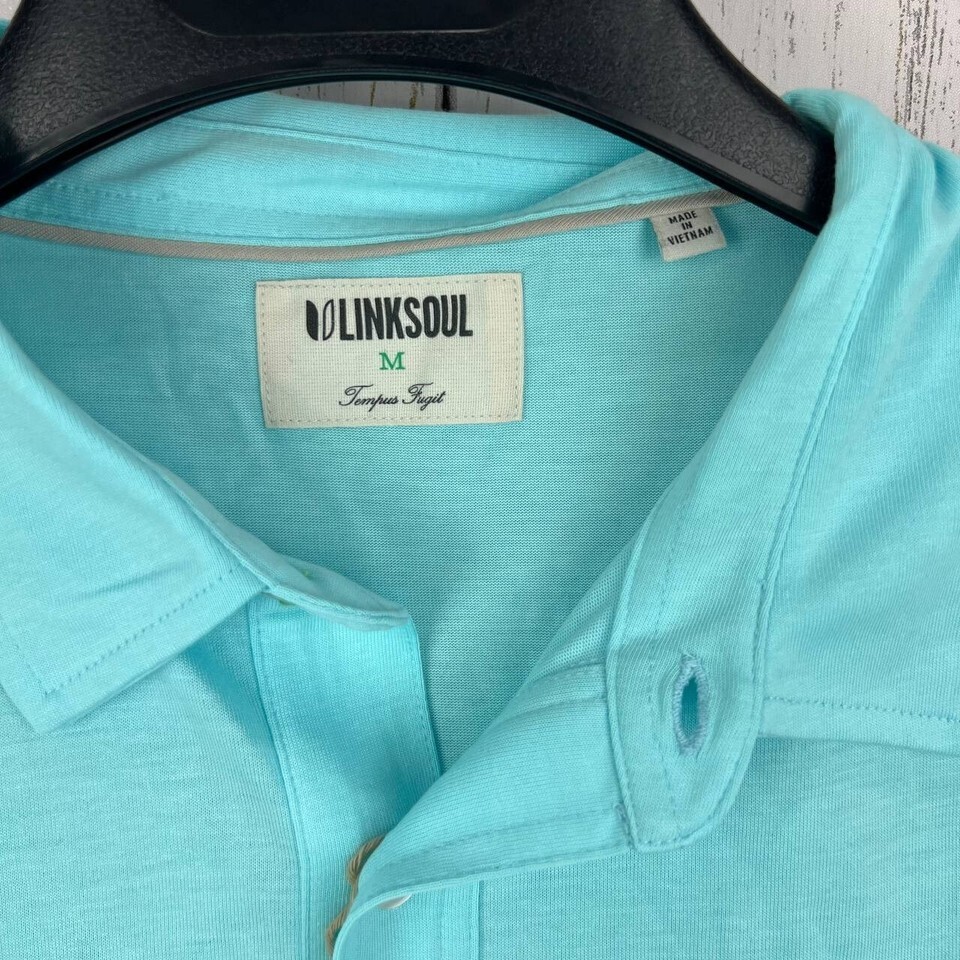 LinkSoul Golf Plain Medium Tempus Fugit Buttoned Down Polo Shirt Blue Men New