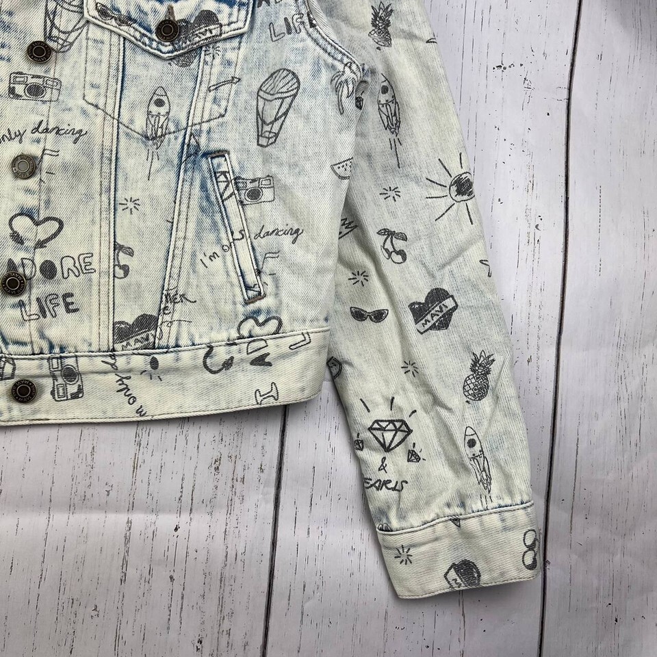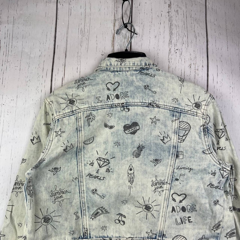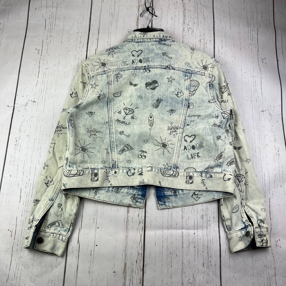Mavi Small Printed Cropped Fit Stretchable Denim Jeans Jacket White Women New