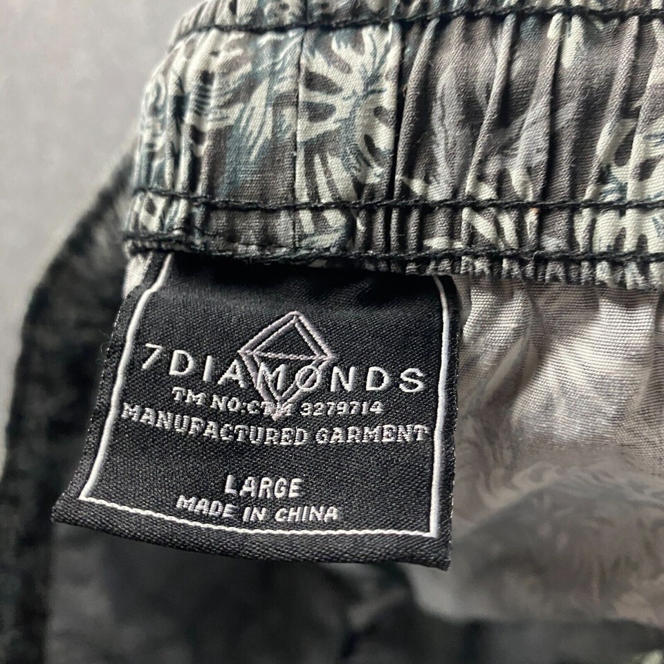 7 Diamonds Swim Trunks Men's Large Hawaiian Gray Stretch Drawstring Polyester