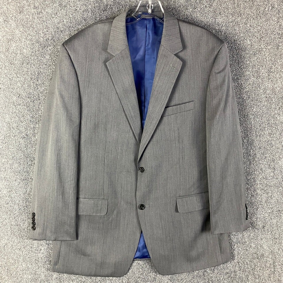 Bill Blass Blazer Men's 44L Suit Jacket Gray Wool Polyester 2 Buttons
