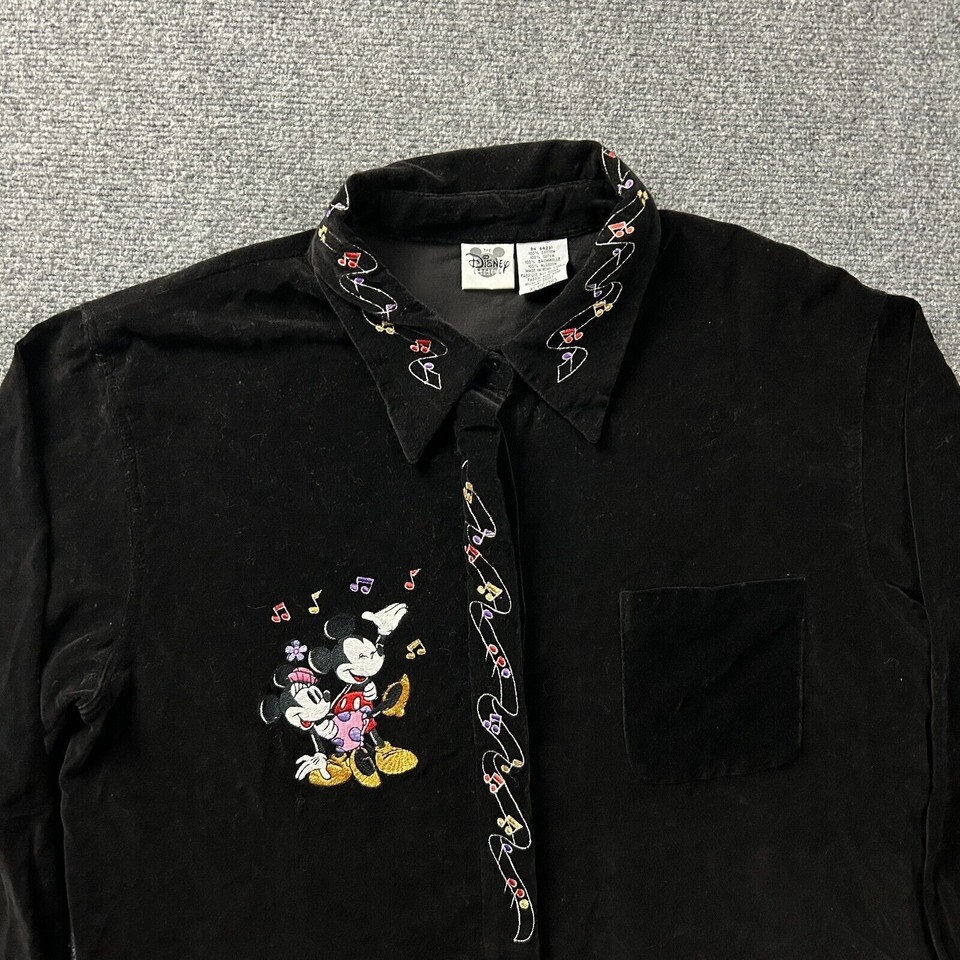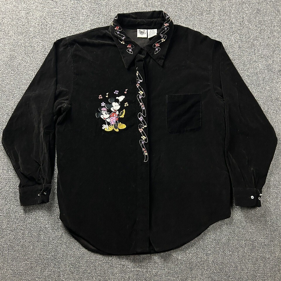 Vintage Disney Catalog Shirt Womens XL 16/18 Black Velvet Button Up Mickey Mouse