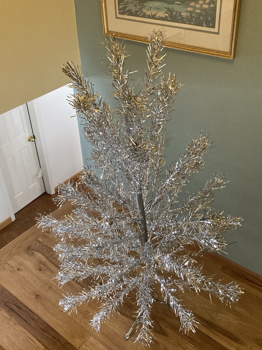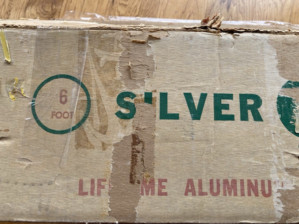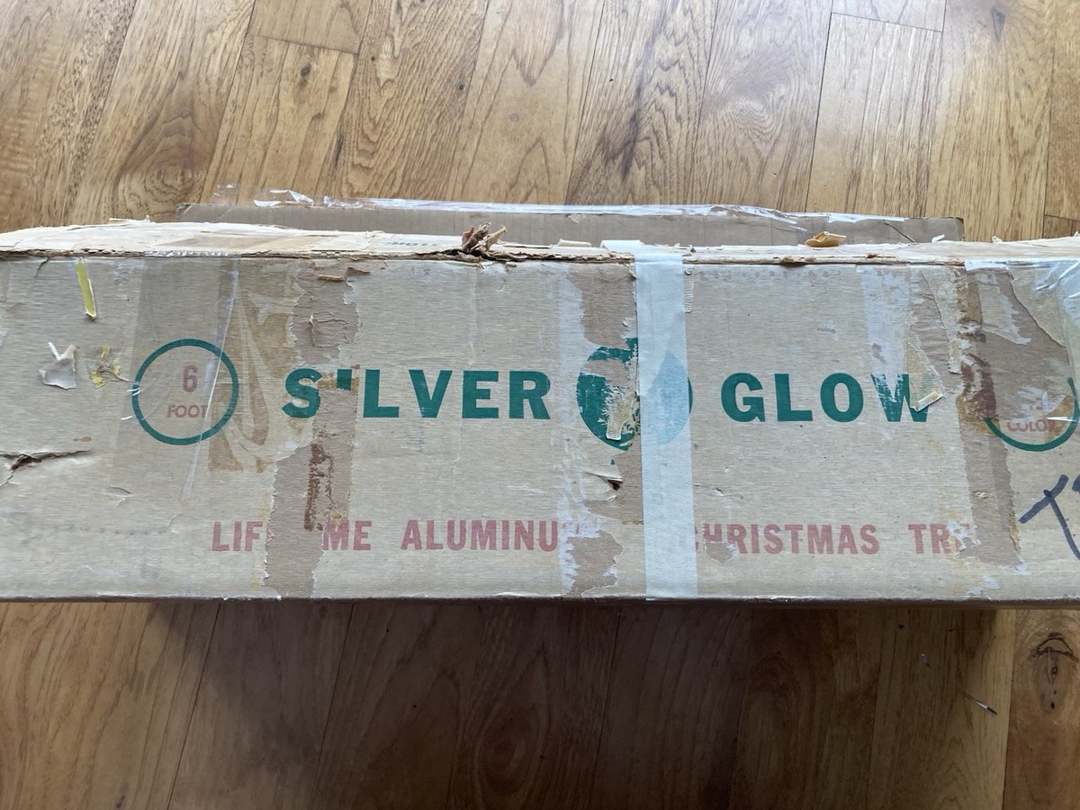 Vintage Mid Century Silver Glow By Arandell 6 FT Aluminum Christmas Tree with the original box. 57 Branches.