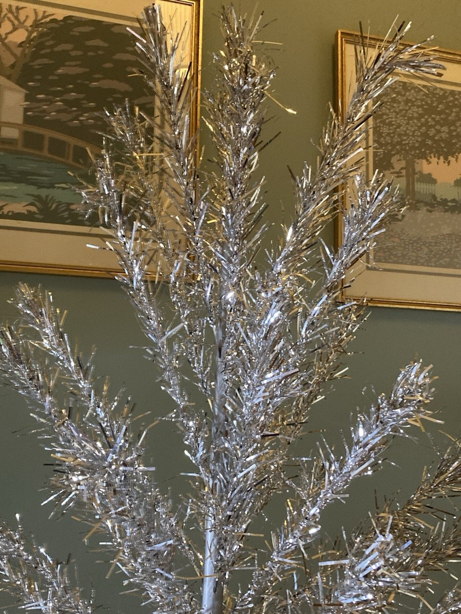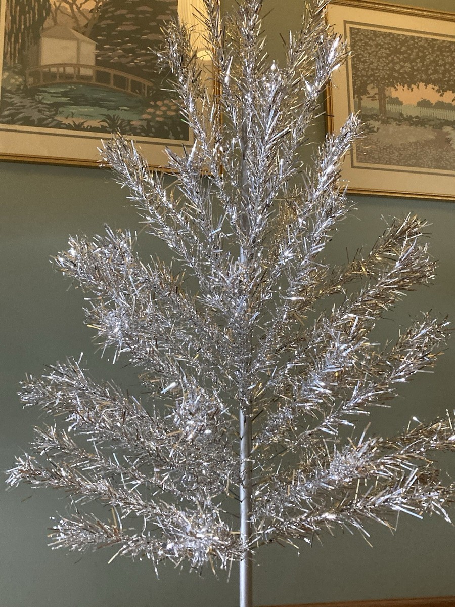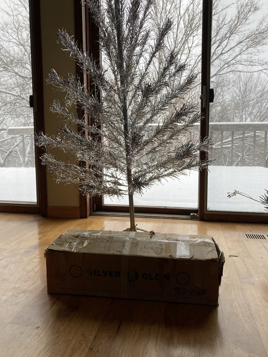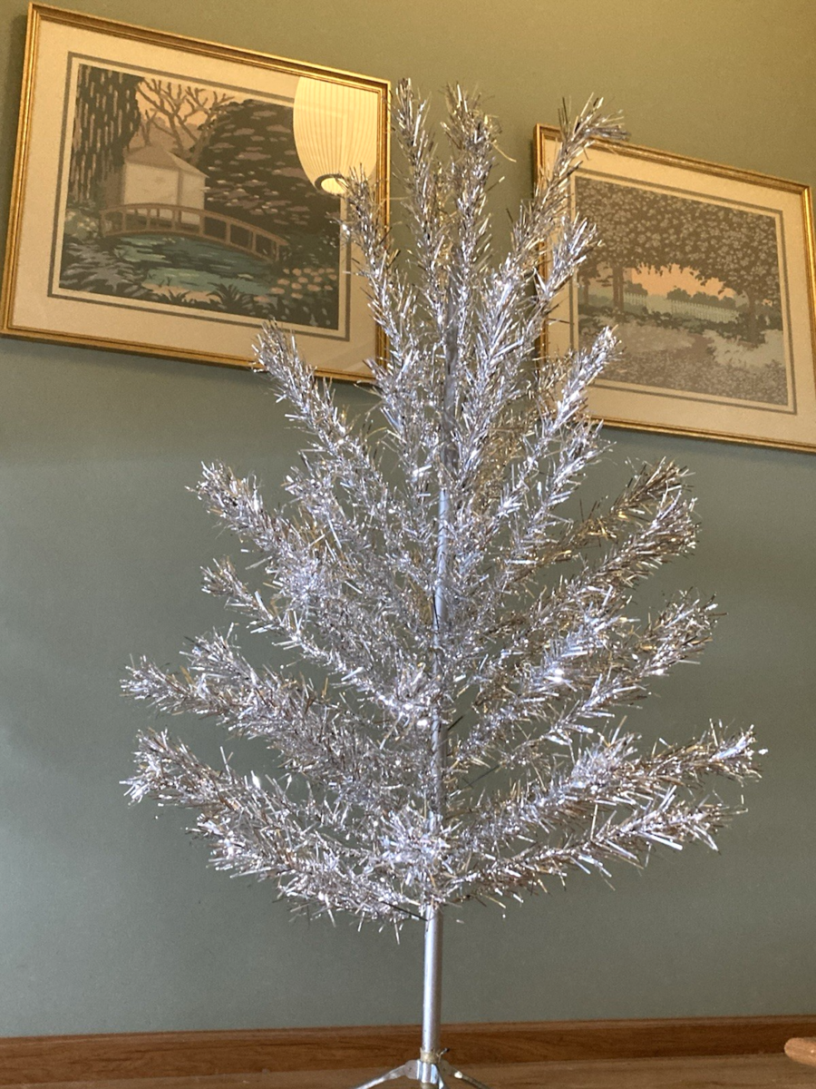 Vintage Mid Century Silver Glow By Arandell 6 FT Aluminum Christmas Tree with the original box. 57 Branches.