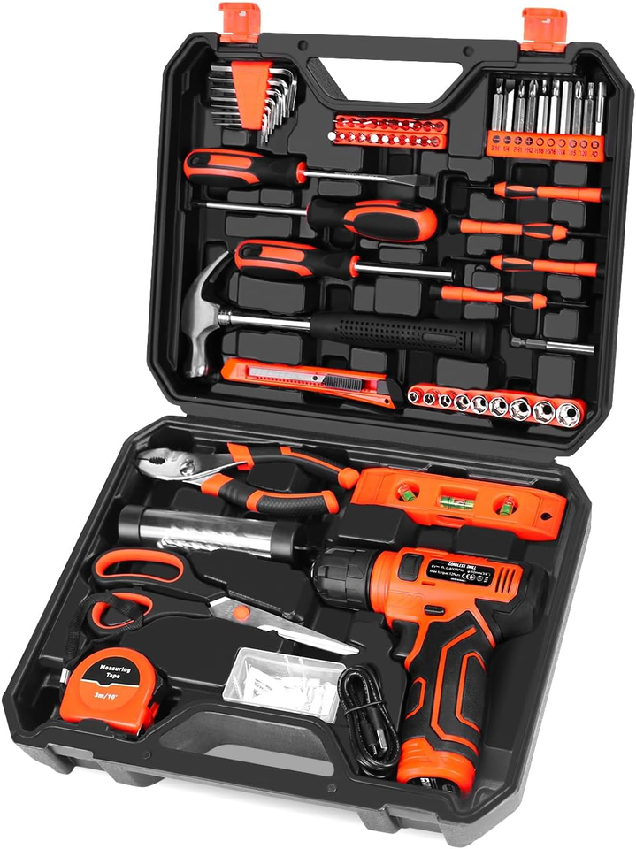 139-Pc Tool Set w/ 8V Cordless Drill Driver – Home Repair & DIY Household Kit