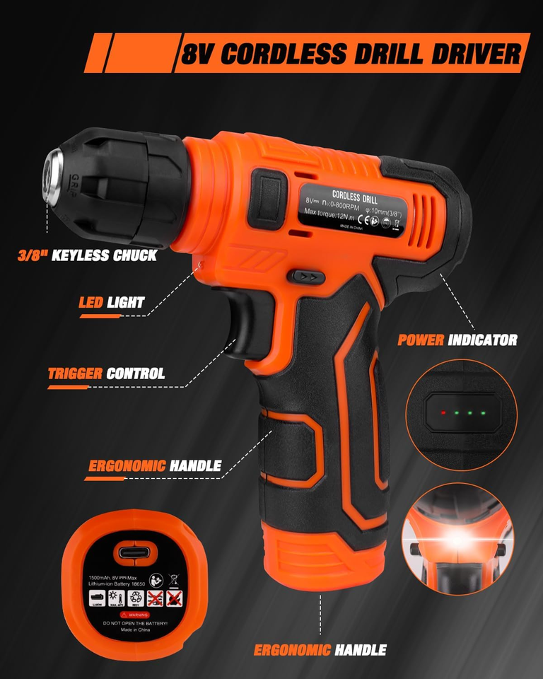 Upgrade your home repair capabilities with this high-quality 139-piece tool kit, complete with an 8V cordless drill, rechargeable battery, and durable storage case. Designed for homeowners, DIY enthusiasts, and professionals, this set provides the essential tools needed for everyday repairs, installations, and creative projects.